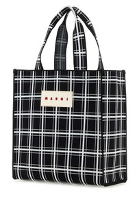 BLACK AND WHITE JACQUARD CHECK SHOPPER
