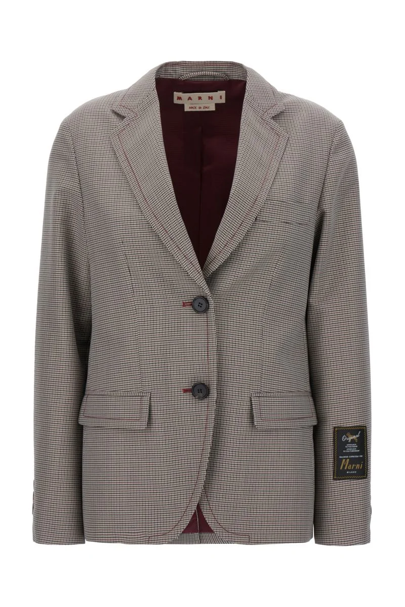 GREY AND RED HOUNDSTOOTH CHECK WOOL JACKET