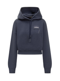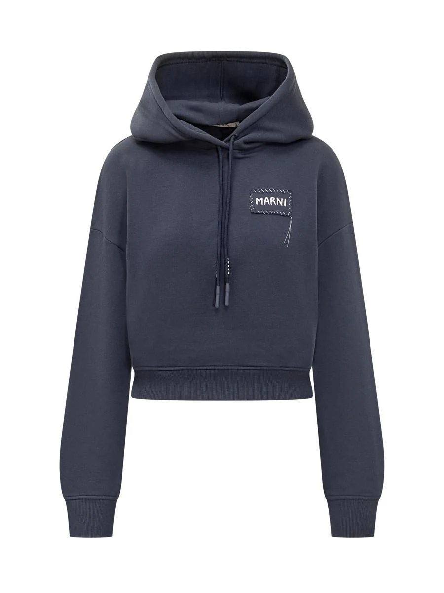 Pure cotton cropped hoodie with hood, embroidered logo on chest and ribbed cuffs. Gender: Women Material: 100% COTTON Color: BLUE Made in: Italy Product ID: FLJE0211X1UTC475 00B95 *Import tax/duty will be calculated at checkout (If applicable)