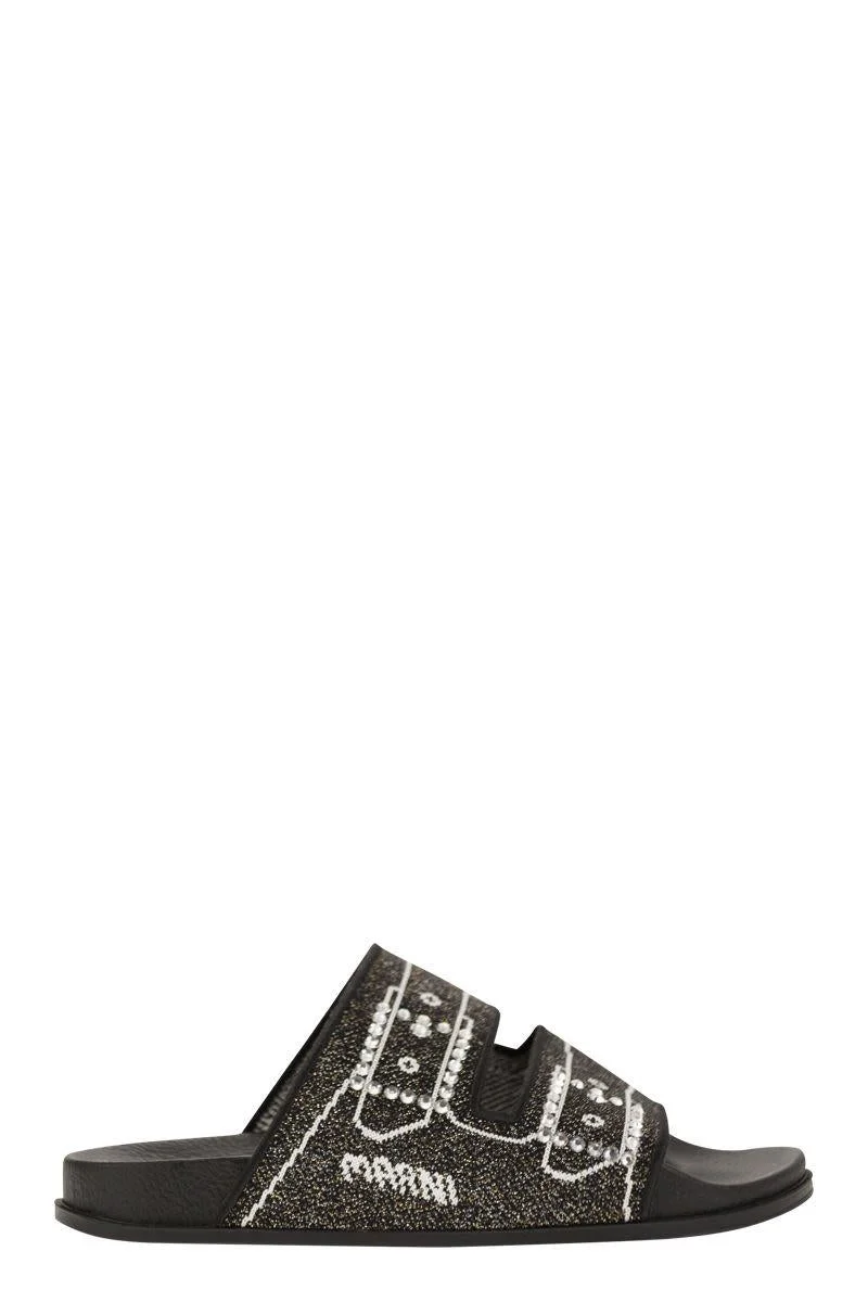 Black Jacquard Sandals