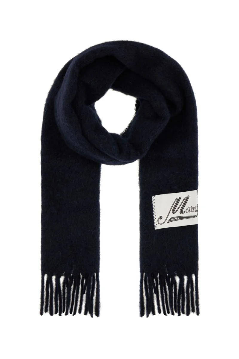 NAVY BRUSHED ALPACA SCARF WITH FRINGES