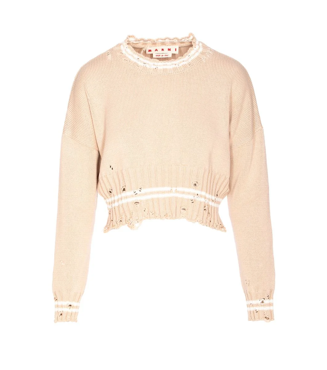 Marni Pink Roundneck Sweater, Crewneck, Long Sleeves, Embroidered Logo On Collar, Distressed, Crop Model, EU SIZE (IT) Gender: Women Material: 100% COTTON Color: Beige Made in: Italy Product ID: GCMD0276Q2UFC65200W35 *Import tax/duty will be calculated at checkout (If applicable)