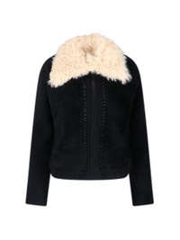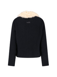 BLACK WOOL CARDIGAN WITH SHEARLING PATCHES