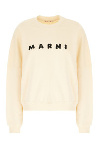 IVORY COTTON CREWNECK T-SHIRT WITH PRINTED MARNI LOGO