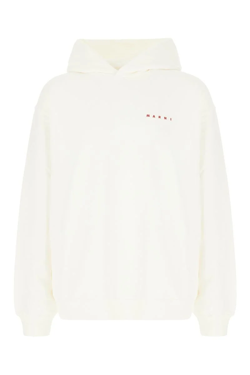 WHITE ORGANIC COTTON HOODIE WITH WRINKLED MARNI LOGO