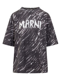 This Marni T-shirt features an oversized fit with dropped shoulders, made from organic cotton jersey and adorned with an abstract pattern throughout. The brand's logo is also featured on the chest in lettering. It has a ribbed crew neck. The model is 177 cm tall and wears an IT size 38. Gender: Women Material: 100%COTTON Color: Black Made in: IT Product ID: THJET49P08USS018 CRN99 *Import tax/duty will be calculated at checkout (If applicable)