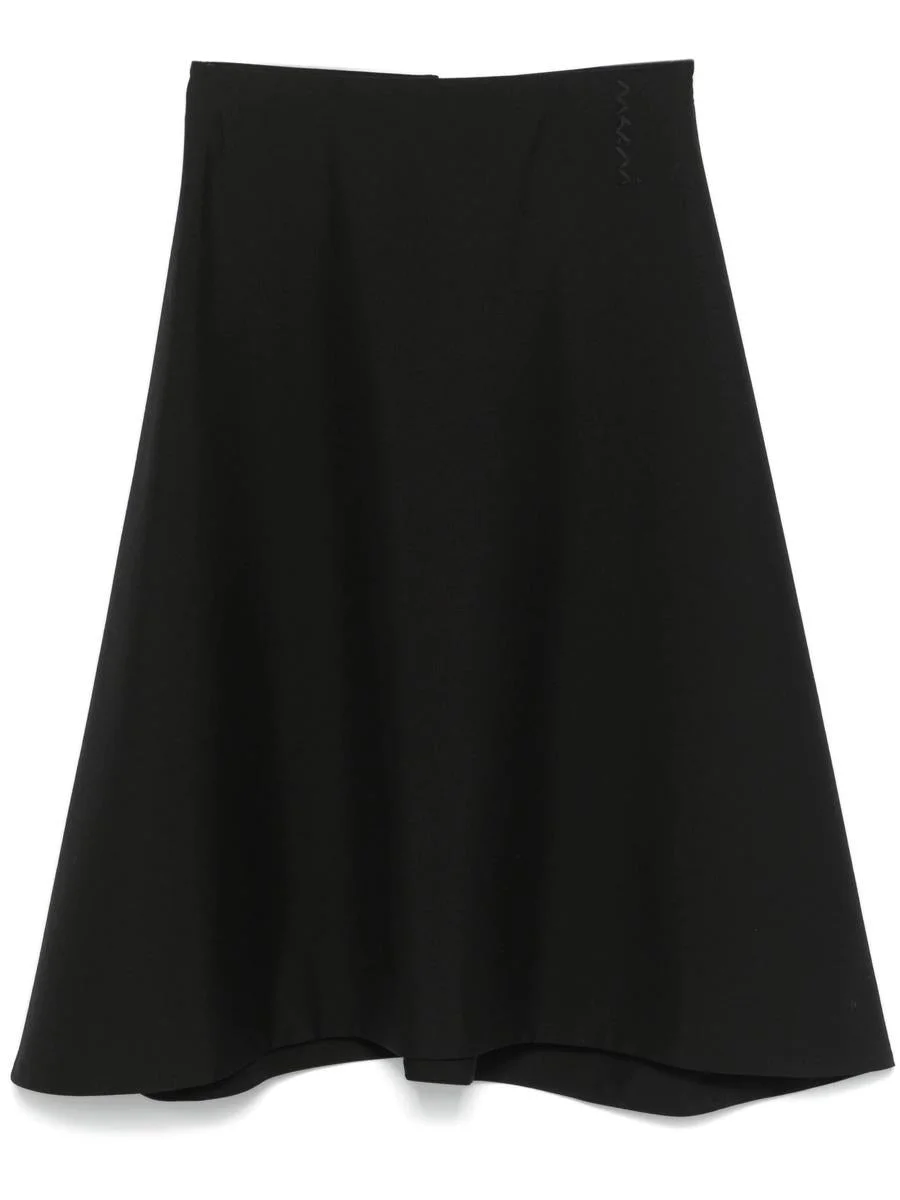 Highlights black virgin wool crepe texture rear zip fastening high-waisted embroidered logo to the front full lining straight hem A-line mid-length   Made in Italy.     Composition Lining: Viscose 100% Outer: Virgin Wool 100% Gender: Women Material: PRIMARY FABRIC: 100% VIRGIN WOOL WOVEN - LINING: 100% VISCOSE-RAPRIMARY FABRIC: 100% VIRGIN WOOL WOVEN - LINING: 100% VISCOSE-RAYON WOVENYON WOVEN Color: Black Made in: Imported Product ID: GOMA0678SUTW839 00N99 BLACK *Import tax/duty will be calculated at checkout (If applicable)