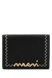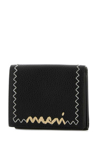 BLACK LEATHER TRIFOLD WALLET WITH MARNI SYMBOL LOGO