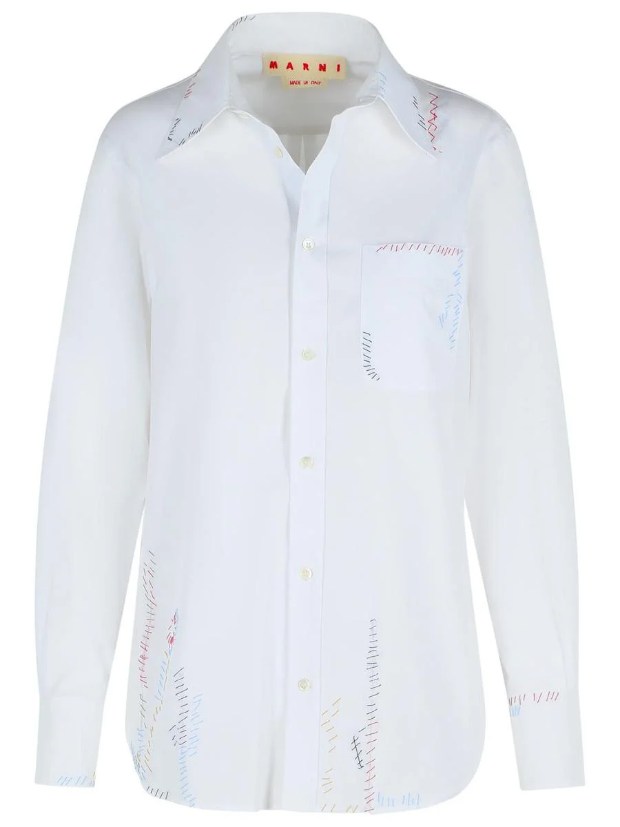 Made of organic cotton poplin, decorated with handmade 'Marni Mending' embroidery and floral details, chest pocket and buttoned cuffs, regular fit with a back crease and rounded hem, front button closure Gender: Women Material: 100% COTTON Color: WHITE Made in: Italy Product ID: CAMA0103S9 TCY6700W01 *Import tax/duty will be calculated at checkout (If applicable)