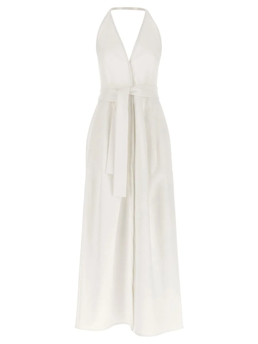 Long 'Ancona1234' dress in stretch cotton gabardine with American neckline with bare back, sleeveless, front button closure, wide skirt with front and back pleats, pockets Gender: Women Material: 94% COTTON 6% ELASTANE Color: WHITE Made in: Italy Product ID: 2511221493600001 *Import tax/duty will be calculated at checkout (If applicable)
