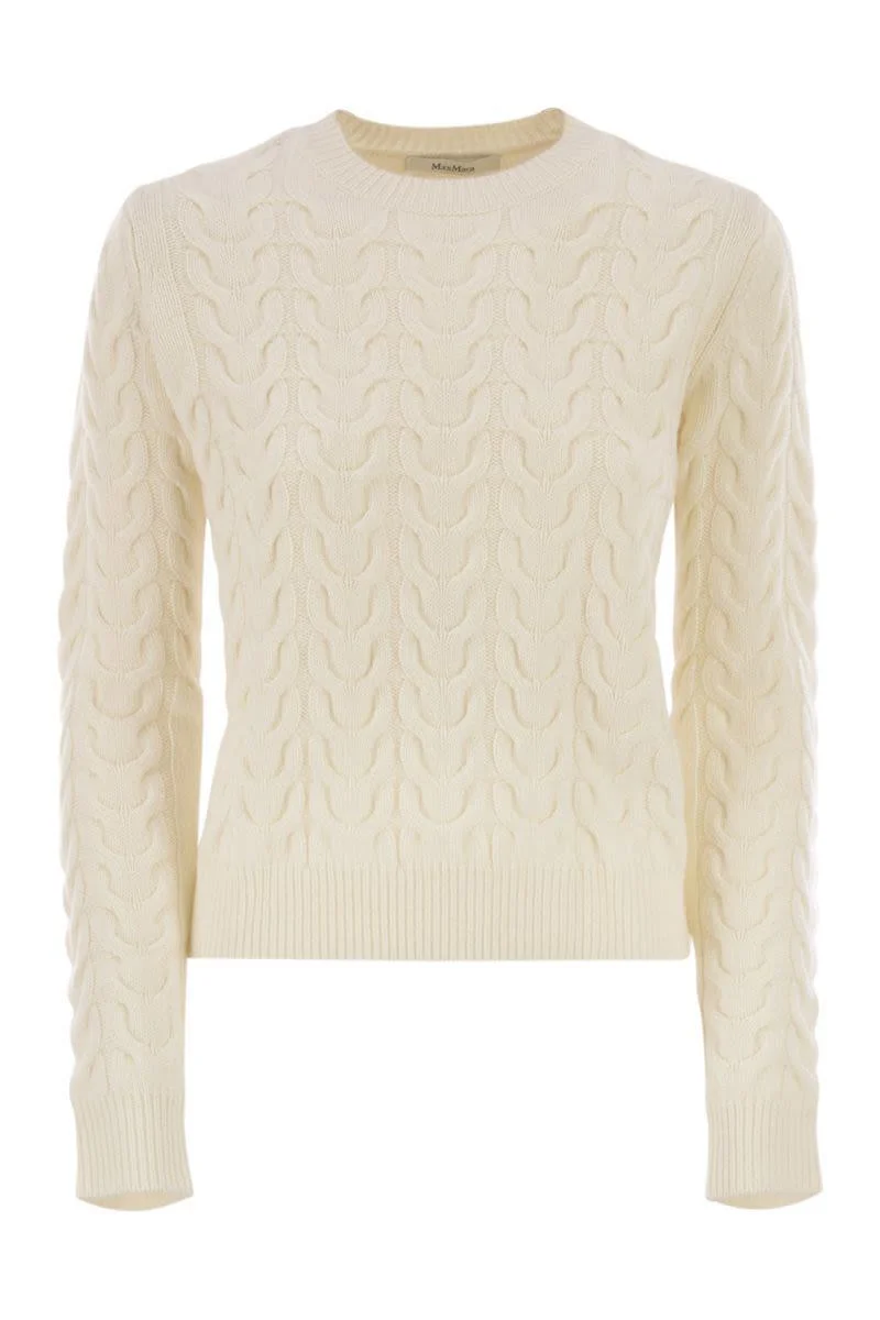 Basic pullover in pure cashmere yarn, with a small volume and all-over cable knit pattern. - Semi-fitted silhouette - Round neck - Long set-in sleeves - Straight hem - Ribbed edges DESIGNER ID: 2521366032600 004 Gender: Women Material: 100% CASHMERE Color: WHITE Made in: Italy Product ID: 2521366032600 004 *Import tax/duty will be calculated at checkout (If applicable)
