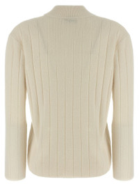'Arten' cashmere sweater with crossed V-neck, wide ribbed pattern, front logo patch detail, long sleeves Gender: Women Material: 100% CASHMERE Color: WHITE Made in: Imported Product ID: 2521366059600003 *Import tax/duty will be calculated at checkout (If applicable)