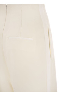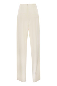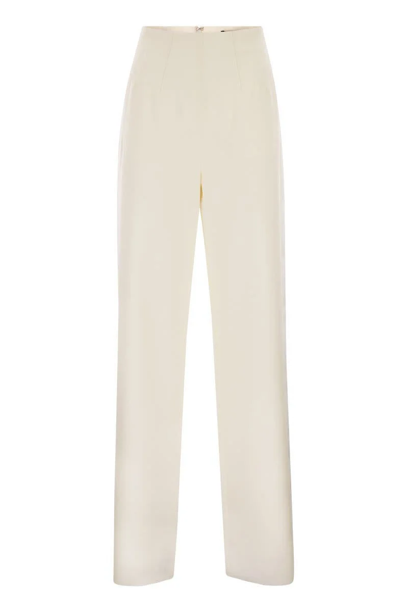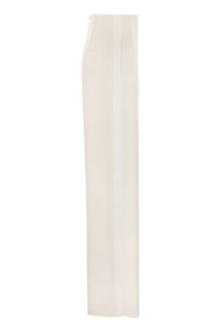 Long trousers in pure wool gabardine with an organza feel, featuring a high-waisted silhouette with bustier-style details on the front and back. - Straight leg - Concealed zip fastening at the back - Side pockets - Slash pockets at the back - Tone-on-tone satin side bands - Lined DESIGNER ID: 2521136034600 001 Gender: Women Material: 100% VIRGIN WOOL LINING: 85% ACETATE, 10% SILK, 5% POLYAMIDE Color: WHITE Made in: Italy Product ID: 2521136034600 001 *Import tax/duty will be calculated at checkout (If applicable)