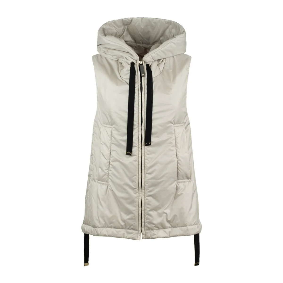Max Mara Beige Padded Gilet With Hood Made Of Drip-Proof Canvas