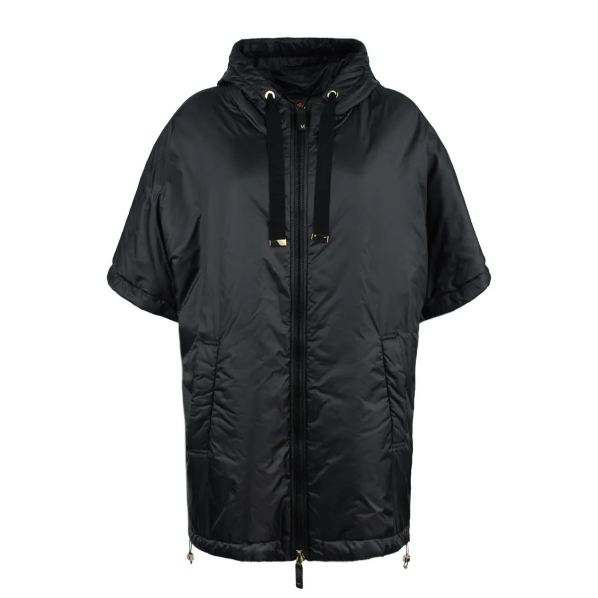 Max Mara Black Padded Cape With Drip-Proof Canvas Hood