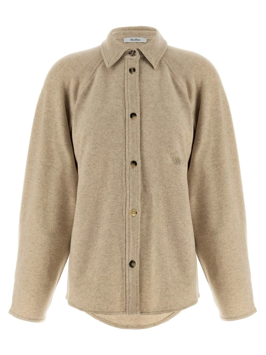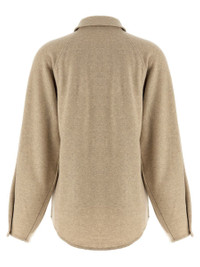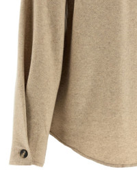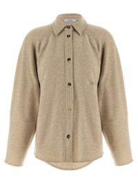 'Ceci' melange stretch cashmere flannel overshirt, tone-on-tone logo embroidery and front button closure, long raglan sleeves with button and counter pleat on the hem, and asymmetric hem Gender: Women Material: 95% CASHMERE 5% ELASTANE Color: Beige Made in: Romania Product ID: 2521956019600001 *Import tax/duty will be calculated at checkout (If applicable)