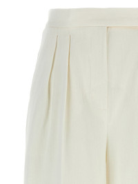 Chenzia' cotton jersey pants with pinstriped jacquard design, high waist with wide leg, double front pleats, pockets, zip hook and front button closure, V detail at the back waist Gender: Women Material: 100% COTTON Color: WHITE Made in: Romania Product ID: 2511781012600001 *Import tax/duty will be calculated at checkout (If applicable)