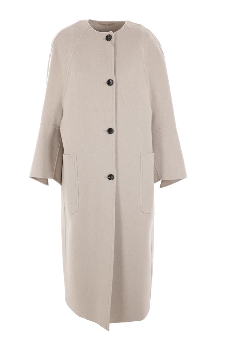 Max Mara oversized coat made of beige cashmere cloth. Featuring crew neck, single-breasted button closure, front patch pockets, long sleeves and a straight hem. Unlined interior. Gender: Women Material: 100% CASHMERE CAPRA HIRCUS HIRCUS CINA Color: Beige Made in: IT Product ID: 242101641360010791004 *Import tax/duty will be calculated at checkout (If applicable)