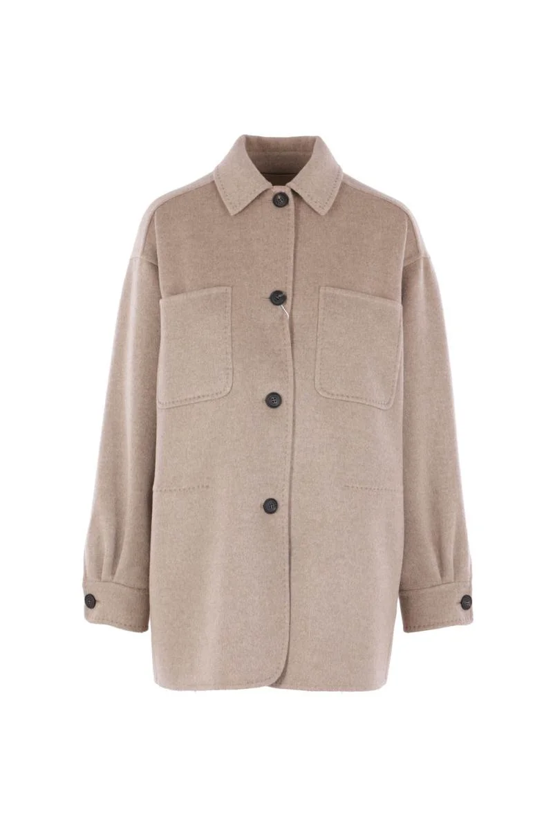 Max Mara overshirt crafted in double-faced pure cashmere in a sand color. Featuring a pointed collar, front button closure, multiple pockets, long sleeves with buttoned cuffs, and a straight hem. Unlined interior. Gender: Women Material: 100% CASHMERE CAPRA HIRCUS HIRCUS CINA Color: DARK CACHA Made in: Italy Product ID: 2521046112600889001 *Import tax/duty will be calculated at checkout (If applicable)