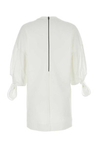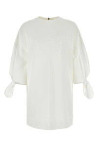 Short dress, Tshirt model with wide sleeves in cotton poplin with bow at hem. - Knitted collar edge - Metal zip at back - Personalisation on front DESIGNER ID: 2411621032600 001 Gender: WOMEN Material: 48% POLYAMIDE, 46% COTTON, 6% ELASTANE SLEEVES: 100% COTTON Color: WHITE Made in: IT Product ID: 2411621032600 001 *Import tax/duty will be calculated at checkout (If applicable)