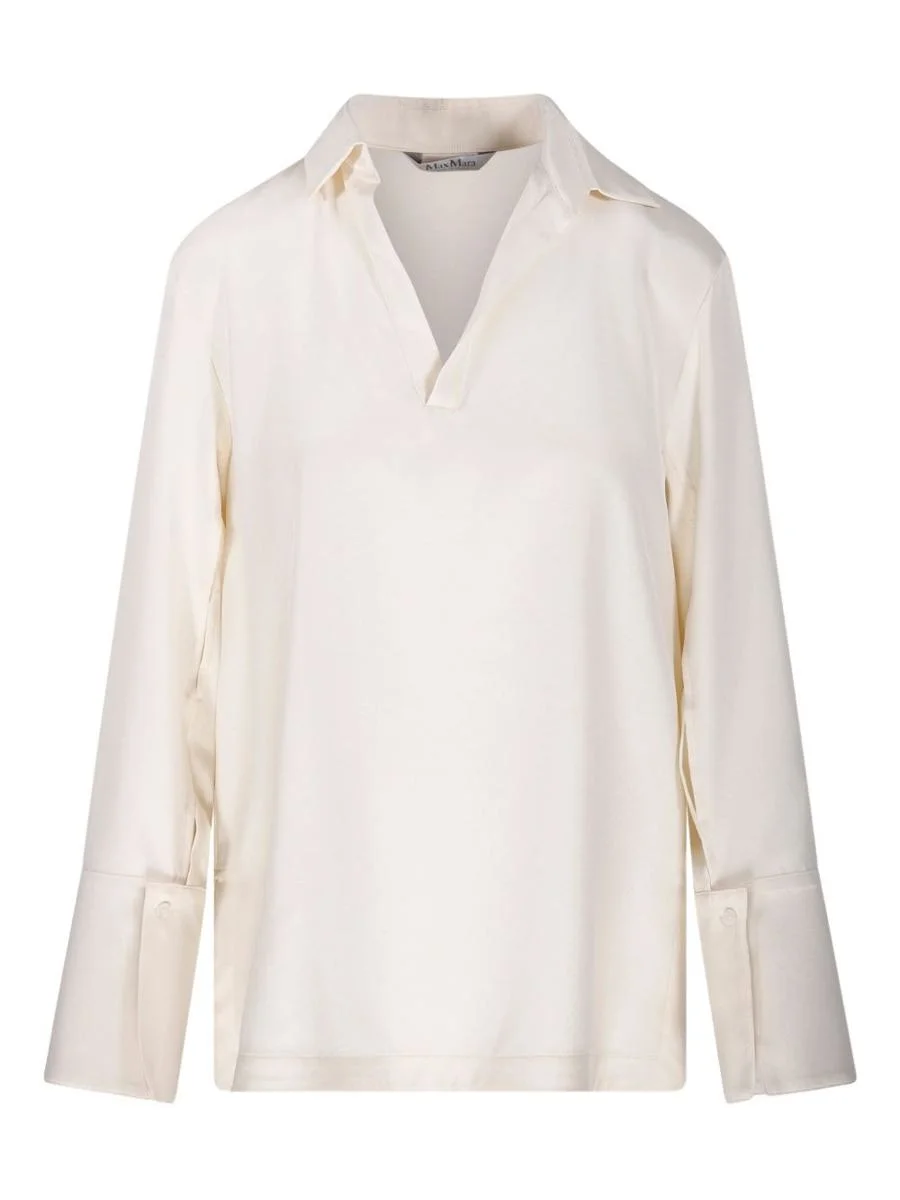 Cenere GB has selected this model for its high stylistic content and its eco-sustainability. Max Mara V-neck blouse Origin: Italy Features white collar neckline V-neck long sleeves buttoned cuffs Composition 93% silk, 7% spandex/elastane Gender: Women Material: 93% SILK, 07% ELASTANE Color: WHITE Made in: Italy Product ID: 2521196018600120005 *Import tax/duty will be calculated at checkout (If applicable)