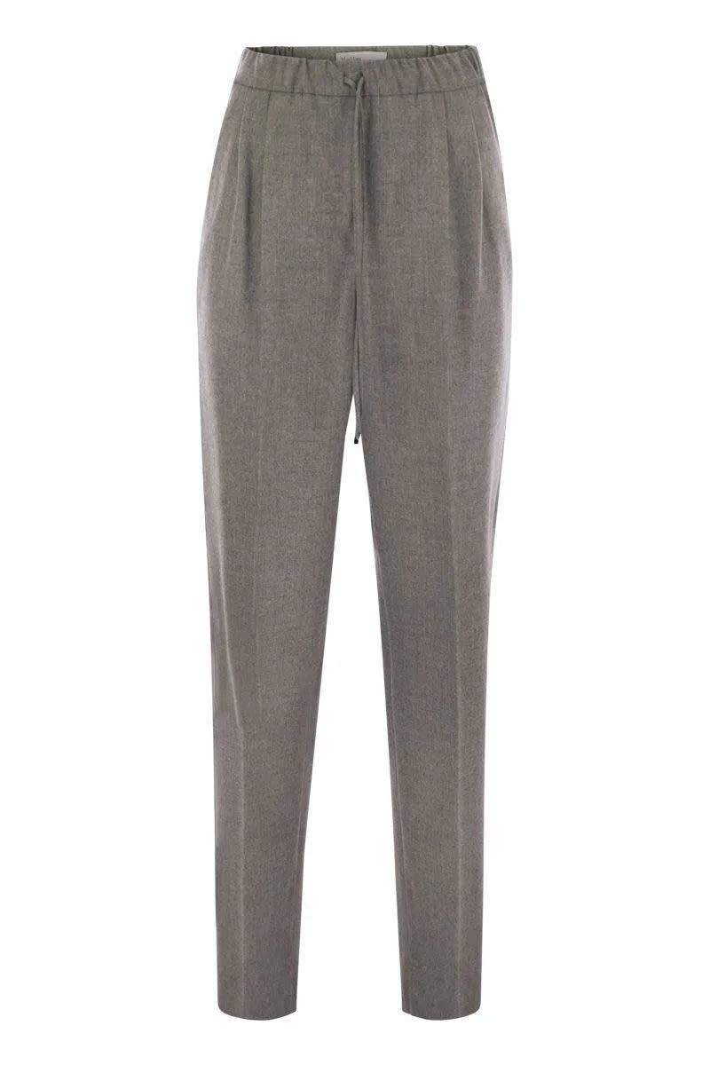 Drawstring trousers in cashmere foule constructed with very fine yarns for a soft, fluid texture in bright, bright colours. - Tailored construction - Slim fit - French pockets on hips - Stretch pleat and darts at front waist DESIGNER ID: 2521136181600 006 Gender: Women Material: 96% CASHMERE, 4% ELASTANE Color: GREY Made in: Italy Product ID: 2521136181600 006 *Import tax/duty will be calculated at checkout (If applicable)