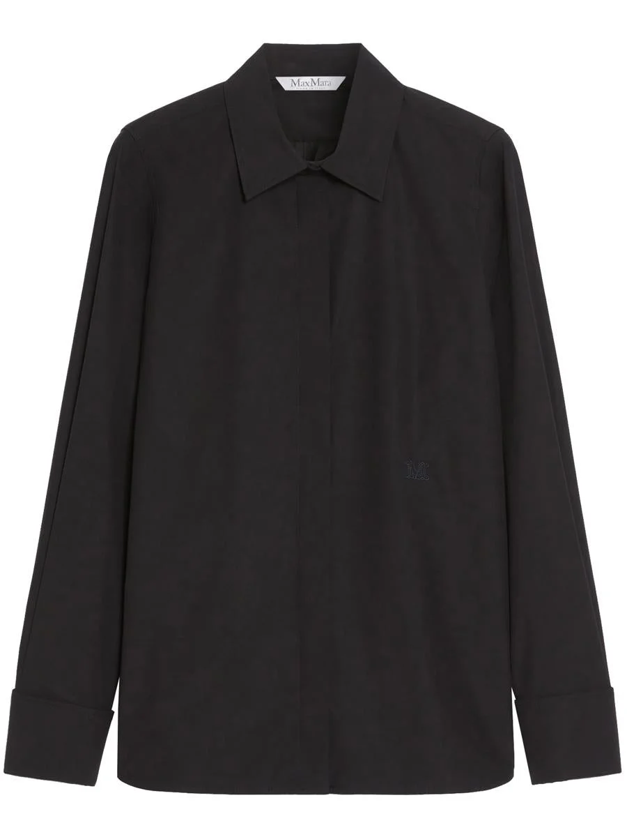 Masculine-cut stretch cotton crepe shirt with classic collar and twin cuffs. Discreet M Monogram embroidery, covered buttons and side slits. Understated and versatile elegance for any occasion. Wear it to stand out in style. Gender: Women Material: COTTONTTON | 97% COTTON, 3% ELASTANE Color: Black Made in: Imported Product ID: 2521116031600_005 NERO *Import tax/duty will be calculated at checkout (If applicable)