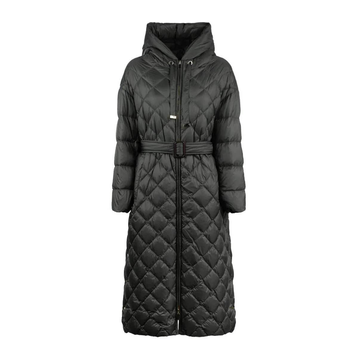 Color Item: Dark Green | Long down jacket featuring a straight silhouette with deep rounded side slits that can be opened with logoed snap buttons | Drip-proof, diamond-quilted nylon canvas down jacket | Drawstring hood | Horizontally striped quilted long sleeves with dropped shoulder | Double-slider front zipper closure | Hip welt pockets | Belt with buckle, removable with horn buttons on the back | Goose down filling | Composition: 100% Polyamide | Lining: 100% Polyamide Gender: Women Material: SYNTHETIC MATERIALS Color: GREEN Made in: Italy Product ID: TREPAR *Import tax/duty will be calculated at checkout (If applicable)