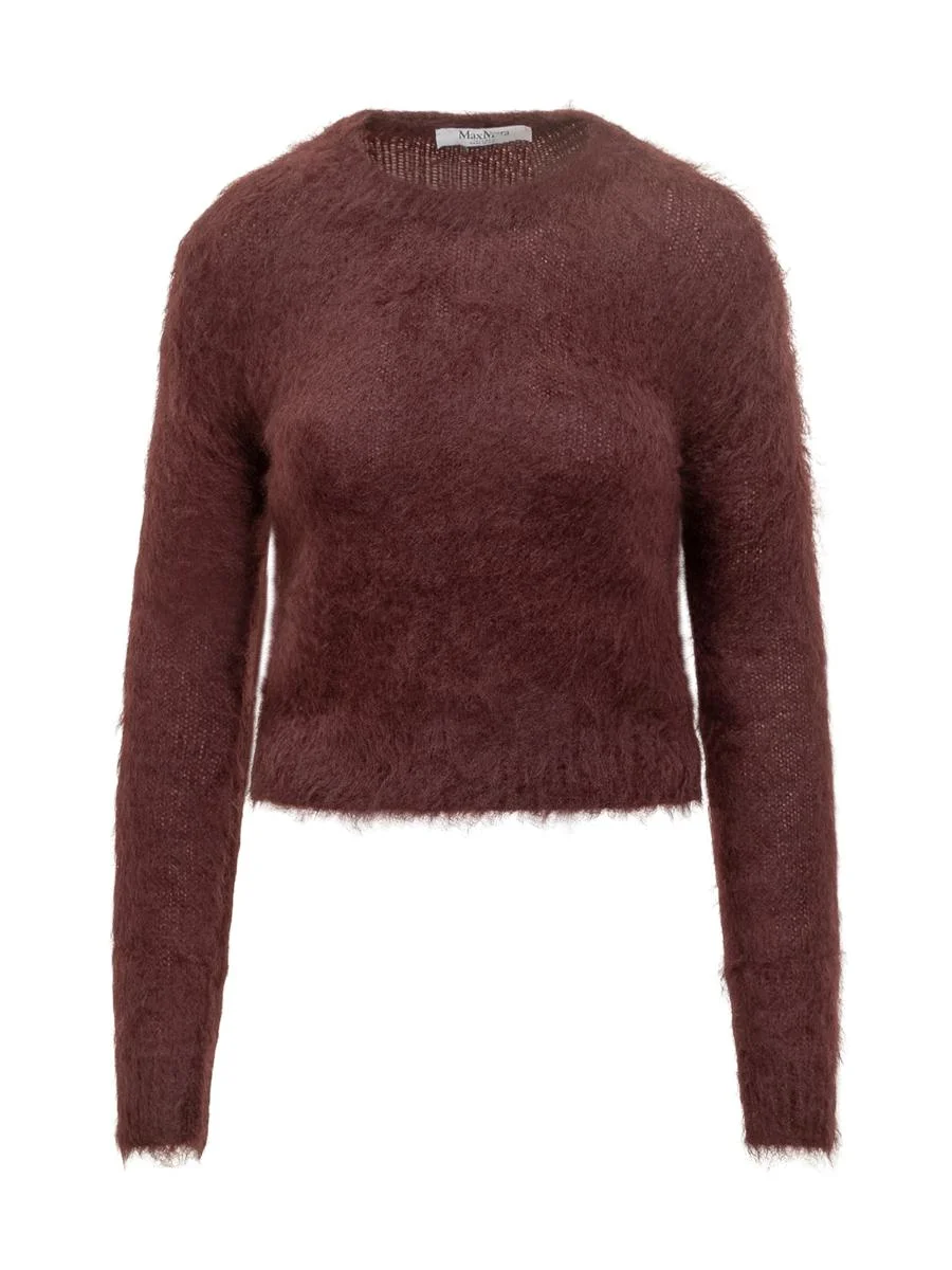 Max Mara burgundy-colored plush-effect soft yarn sweater with crew neck and long sleeves. Gender: Women Material: 67% MOHAIR , 30% POLYAMIDE, 3% WOOL Color: RED Made in: Italy Product ID: 2521366263600 003 *Import tax/duty will be calculated at checkout (If applicable)