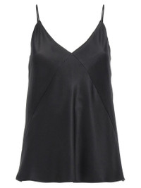 'Metello' silk satin top with V-neck, thin straps Gender: Women Material: 100% SILK Color: Black Made in: Italy Product ID: METELLO002 *Import tax/duty will be calculated at checkout (If applicable)