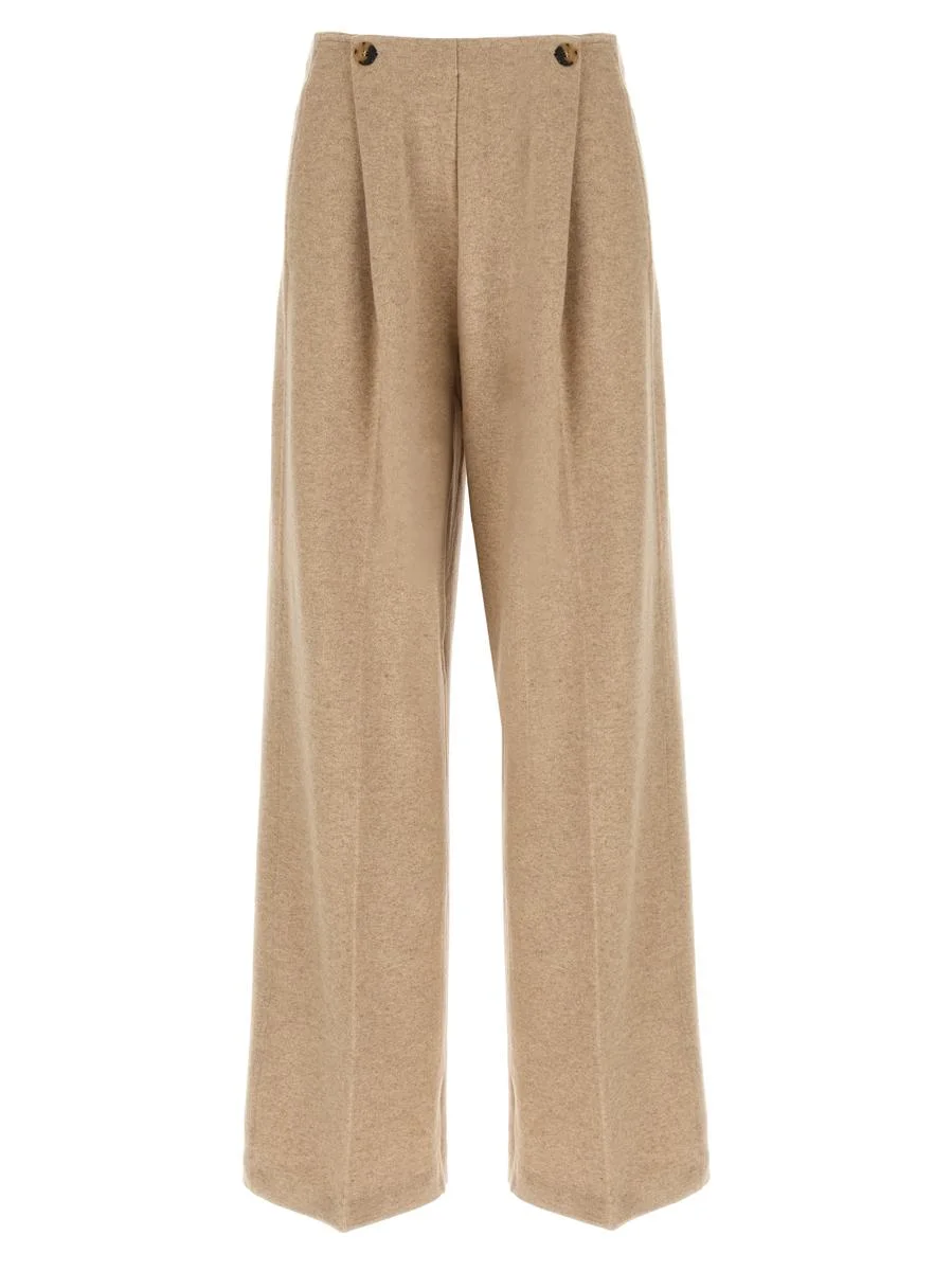 'Micenea' stretch melange cashmere flannel pants, loose leg, tone-on-tone logo embroidery on the back, horn button clamp at the waist, stretched pleat, elastic waistband, pockets Gender: Women Material: 95% CASHMERE 5% ELASTANE Color: Beige Made in: Romania Product ID: 2521786059600001 *Import tax/duty will be calculated at checkout (If applicable)