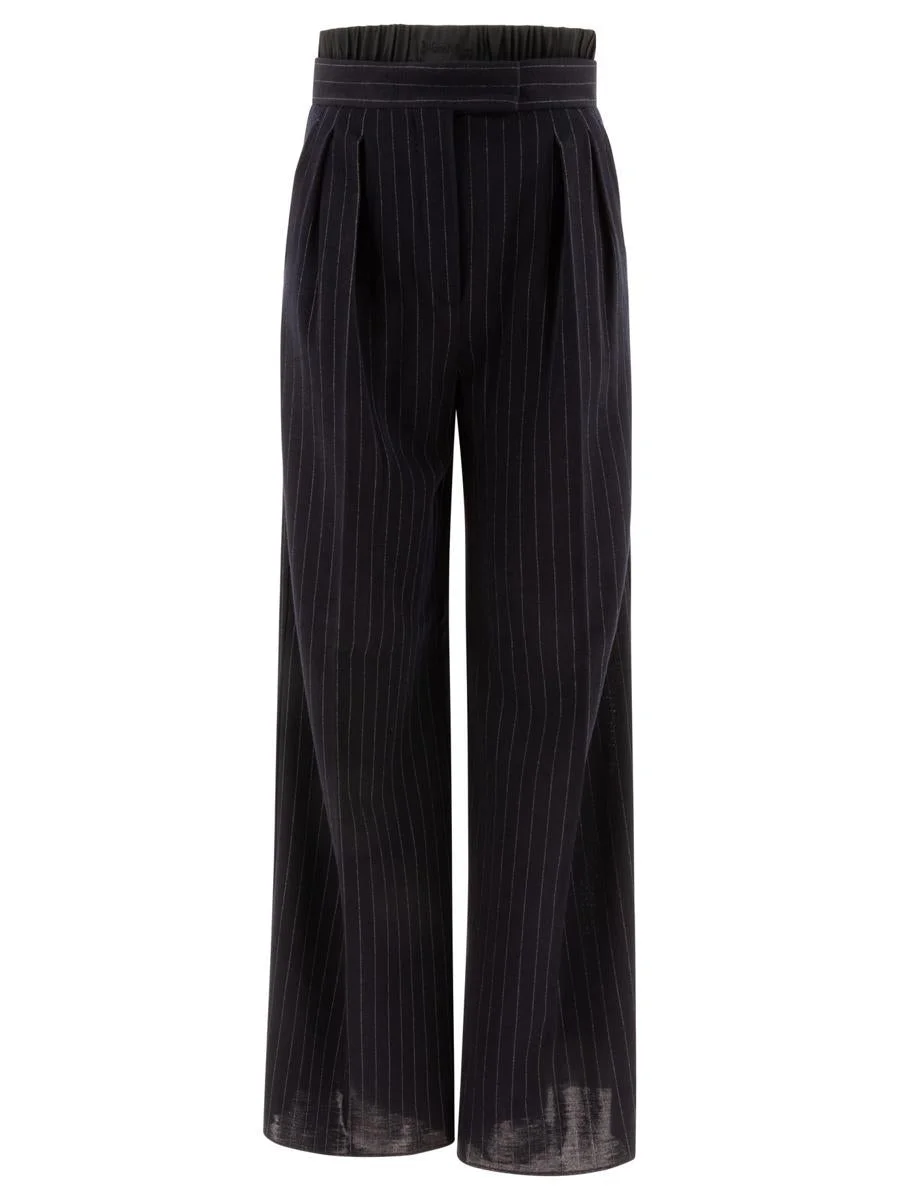 Max Mara's "Piroghe" pinstripe pants are the perfect combination of elegance and comfort. Made with a regular fit, these pants offer a sophisticated and versatile silhouette, ideal for the woman looking for a garment that will suit both professional settings and special occasions. Pleat work and pockets add a touch of practicality without sacrificing style. || - Regular fit - Zipper and hook-and-eye closure - High waist - Darts - Side pockets - Back pockets - Matching shorts to be worn high waisted || For a flawless look, pair the "Piroghe" pinstripe pants with a silk blouse and tailored blazer. Complete the outfit with classic pumps and a tote bag for a touch of class. For a more casual variation, opt for a light sweater and leather loafers. Materials: Acetate Extra Description: Regular fit;High rise Gender: WOMEN Material: 89% ACETATE 6% SILK 5% POLYAMIDE Color: NAVY Made in: IT Product ID: 2421786052600PIROGHE001 *Import tax/duty will be calculated at checkout (If applicable)