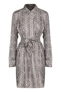 Printed silk chemisier dress Short chemisier dress with a slightly asymmetrical hem and rounded slits, made of pure silk twill with Monogram print. It features a waist belt for a customizable fit, as well as long sleeves and a collar that add a touch of class. Perfect for the wardrobe of anyone who desires a versatile and chic piece. 100% Silk Gender: Women Material: SILK Color: GREY Made in: Italy Product ID: GREMBO2521226072600_001 *Import tax/duty will be calculated at checkout (If applicable)