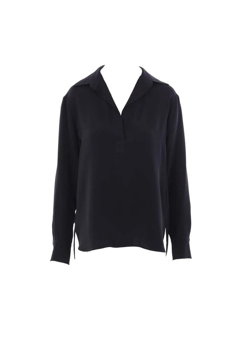 Max Mara blouse crafted from pure black silk crepe de chine. Featuring a pointed collar with V-neckline, long sleeves with buttoned cuffs, and a rounded hem. Gender: Women Material: 100% SILK Color: Black Made in: Portugal Product ID: 242111602260010175004 *Import tax/duty will be calculated at checkout (If applicable)