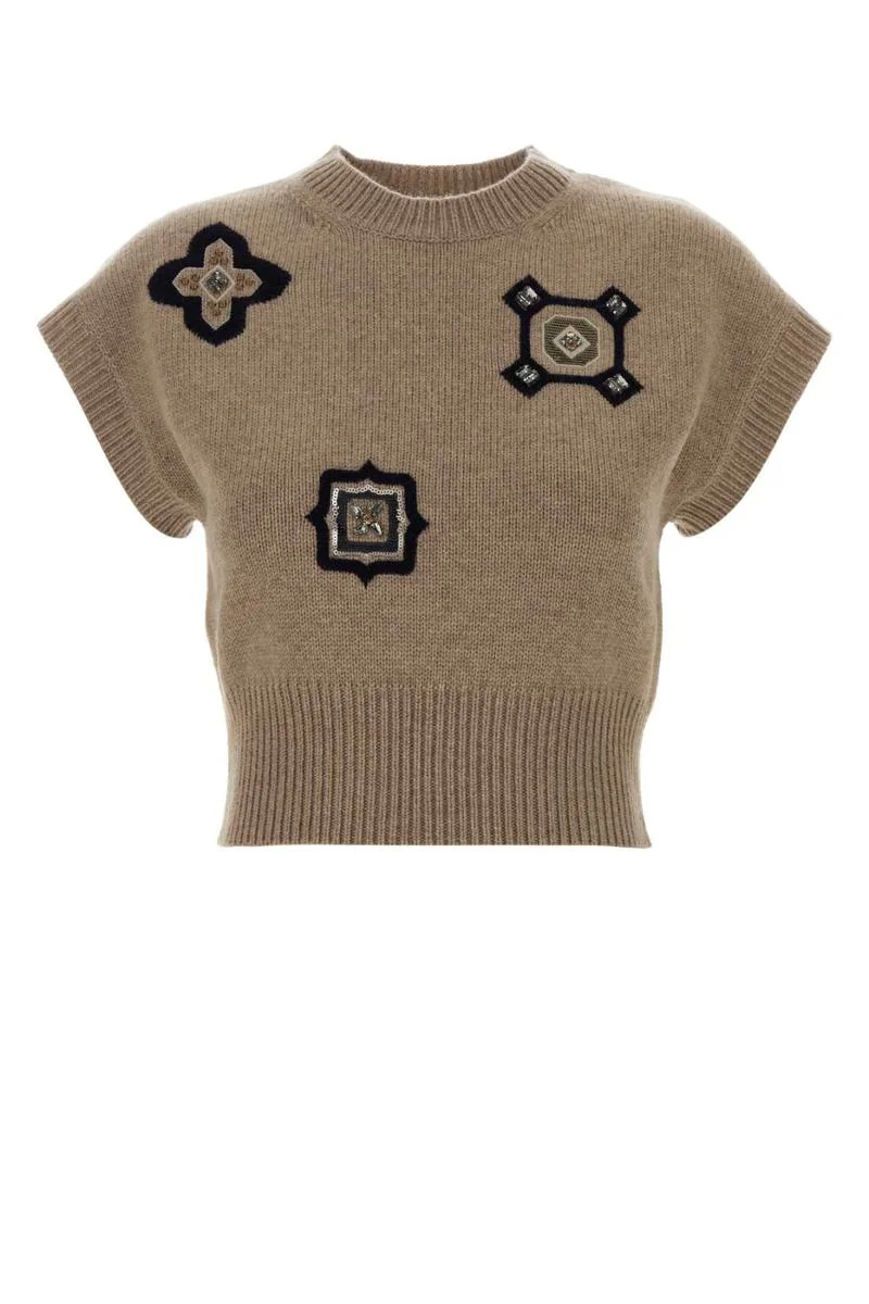 Wool and cashmere cropped sweater - SAND