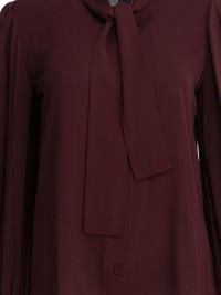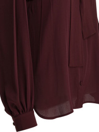 Max Mara silk charmeuse shirt, made from heavyweight charmeuse of pure washed silk. The construction features a straight construction with a back spur cut and ruffled pattern on the back. The wide collar is defined by a bow-tie scarf at the front. The silhouette is set with long sleeves with slight volume on the shoulders and cuffs, Monogram buttoned shirt cuffs, front button closure and rounded hem with side slits. || - Solid color - Collar with bow - Long sleeves - Washed pure silk charmeuse shirt - Straight cut, rounded hem - Side slits - Back spur with ruffle - Cuffs with logoed button - Front closure with visible buttons - Regular fit Extra Description: Solid colourRegular fit;Bow collar;Long sleeves Gender: Women Material: 100% SILK Color: RED Made in: Italy Product ID: 2521116082MELANIA035 *Import tax/duty will be calculated at checkout (If applicable)