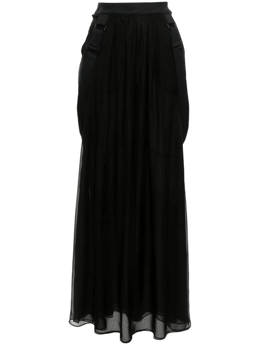 black silk/cotton chiffon semi-sheer construction pleat detailing strap detailing two thigh-high side slits floor-length side button fastening Gender: Women Material: COTTON 50% SILK 50% Color: BLACK Made in: IT Product ID: 11101053600004 *Import tax/duty will be calculated at checkout (If applicable)
