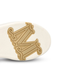 Max Mara Maxi Wk camel-colored leather sneakers interpret casual style with a luxury touch. The clean line is enriched by the tone-on-tone side maxi logo, while the lightweight rubber sole ensures comfort and practicality. A versatile and distinctive model, perfect for completing urban and contemporary looks. - Upper: 100% camel; 100% calfskin - Color: beige - Lining: 61% polyester, 28% polyamide, 11% elastane - Chunky rubber sole customized with maxi M Monogram - Comfortable, high-performance internal footbed - Rubber Max Mara label on the back of the heel - Box included - Item code: 2524766012600001 Gender: Women Material: IN 100% CAMELWOOL CAMELUS DROMEDARIUS MONGOLIA , LEATHER OF CALF BOS TAURUS NETHERLANDS Color: Brown Made in: Romania Product ID: 2524766012600001_AI25 *Import tax/duty will be calculated at checkout (If applicable)