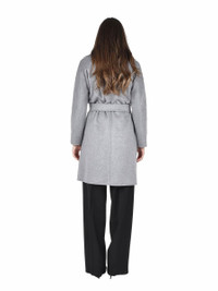 Wrap closure with belt tied at the waist Peak lapels; Long sleeves Side slant pockets Regular fit Color: grey 88% virgin wool, 6% silk, 6% cashmere Made in Italy Gender: Women Material: 88% WOOL, 6% SILK, 6% CASHMERE Color: GREY Made in: Italy Product ID: 2526016021600074 *Import tax/duty will be calculated at checkout (If applicable)