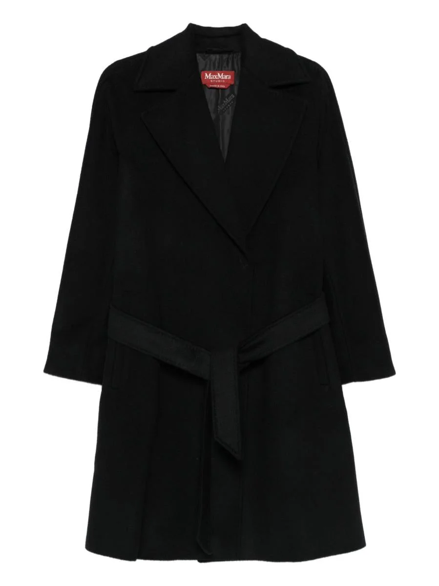 Open front Wide lapel collar; long kimono sleeves Matching adjustable and detachable belt at the waist Side welt pockets Lined; tailored stitching along all the trims Flared fit Black color 100% Virgin Wool Gender: Women Material: 100% WOOL Color: Black Made in: Imported Product ID: 2526016091600013 *Import tax/duty will be calculated at checkout (If applicable)