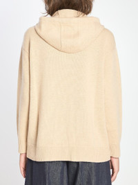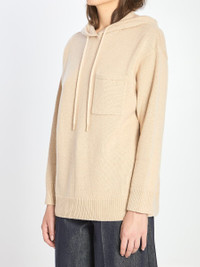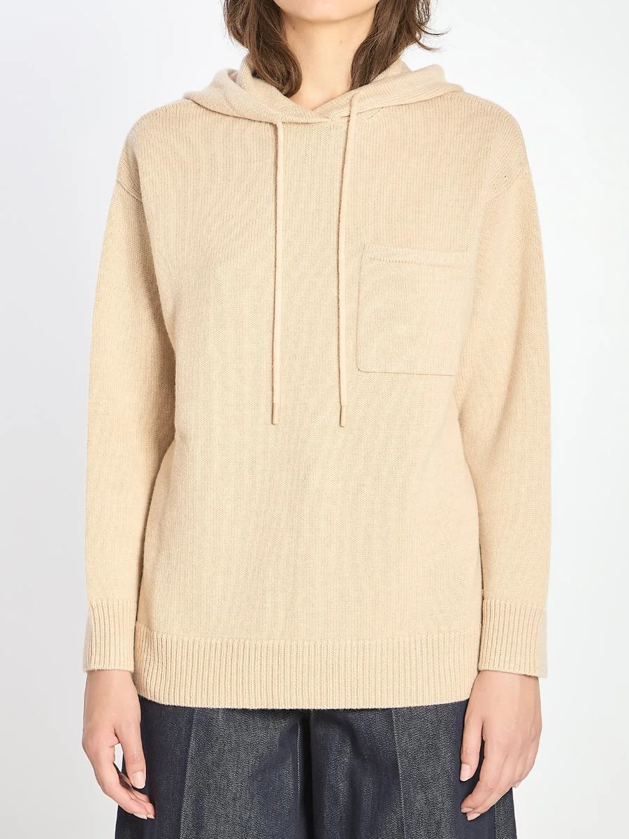 Beige sweatshirt in smooth wool and cashmere yarn. Features a drawstring hood with tone-on-tone enameled metal tips, long sleeves, patch chest pocket, ribbed cuffs and hem, and a branded tag at the front hem. Dropped shoulder design. Regular fit. The model is 178 cm tall and wears a size S. Size nationality: INT Gender: Women Material: 70% WOOL, 30% CASHMERE Color: Beige Made in: Italy Product ID: 34871299 2521366132600 12021 006 *Import tax/duty will be calculated at checkout (If applicable)