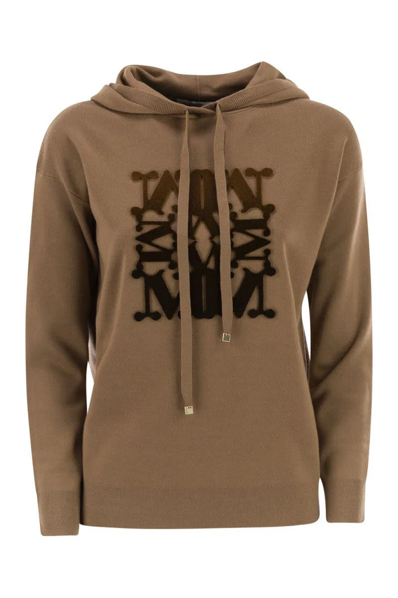 Sweatshirt with drawstring hood, made of lightweight pure wool interlock yarn. Special Edition model, personalised with MaxMaraGram jacquard pattern and Max Mara logo on the front. Finished with long sleeves, dropped shoulder and ribbed edges. - Hood - Logo on front - Dropped shoulder DESIGNER ID: 2521366222600 013 Gender: Women Material: 100% VIRGIN WOOL Color: Brown Made in: Italy Product ID: 2521366222600 013 *Import tax/duty will be calculated at checkout (If applicable)