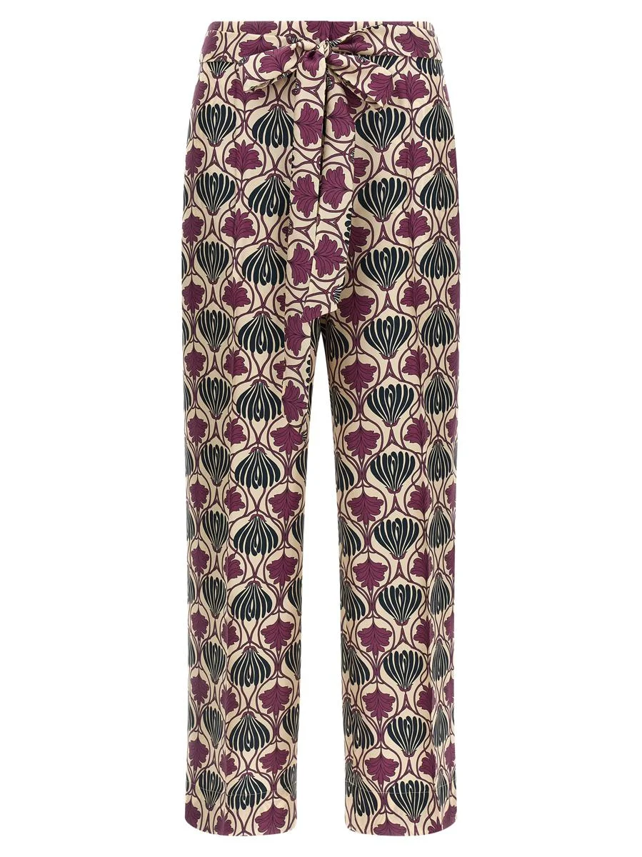 'Timec' all-over print silk trousers, cropped model with straight leg, elastic waistband and zip and hook closure, removable and knotted belt at the waist, pockets Gender: Women Material: 100% SILK Color: PURPLE Made in: Romania Product ID: 2529136022600003 *Import tax/duty will be calculated at checkout (If applicable)