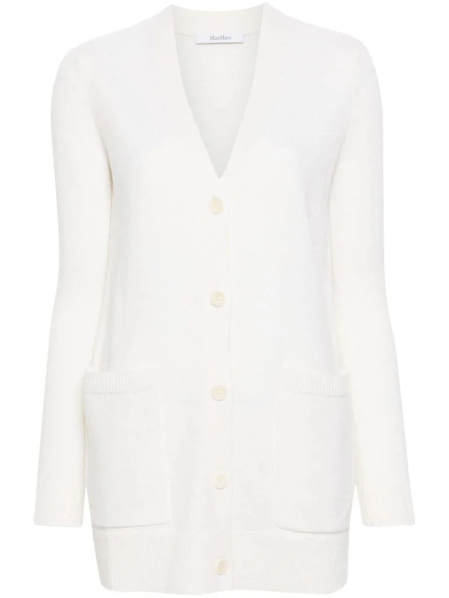 cream white wool-cashmere blend knitted construction V-neck long sleeves two side patch pockets ribbed cuffs and hem 1951-embroidery to the rear front button fastening This piece fits true to size. We recommend you get your regular size Model is 1,75m / 5ft 8in wearing size S Gender: Women Material: WOOL 70%, CASHMERE 30% Color: WHITE Made in: IT Product ID: 21346052600044 *Import tax/duty will be calculated at checkout (If applicable)