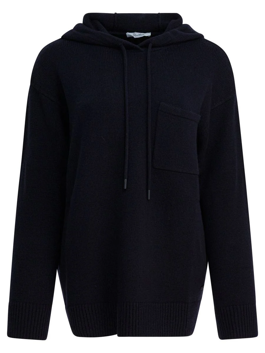 Max Mara wool and cashmere hooded sweater made of shaved yarn with a soft texture. The silhouette features long sleeves with dropped shoulders, ribbed trimmed edges at the cuffs and hem, and an adjustable drawstring hood. A patch pocket on the chest, left side, adds functional detail. Tone-on-tone enameled metal finials on the drawstring and an appliqued logo tag on the front hem complete the construction. || - Solid color - Long sleeves - Drawstring hood with enameled metal finials - Dropped shoulder - Patch pocket on chest, left side - Shaved wool and cashmere yarn - Ribbed cuffs and hem - Logo nameplate at bottom front - Relaxed fit Extra Description: Solid colourRelaxed fit;Long sleeves Gender: Women Material: 70% WOOL 30% CASHMERE Color: BLUE Made in: Italy Product ID: 2521366132LIANA003 *Import tax/duty will be calculated at checkout (If applicable)