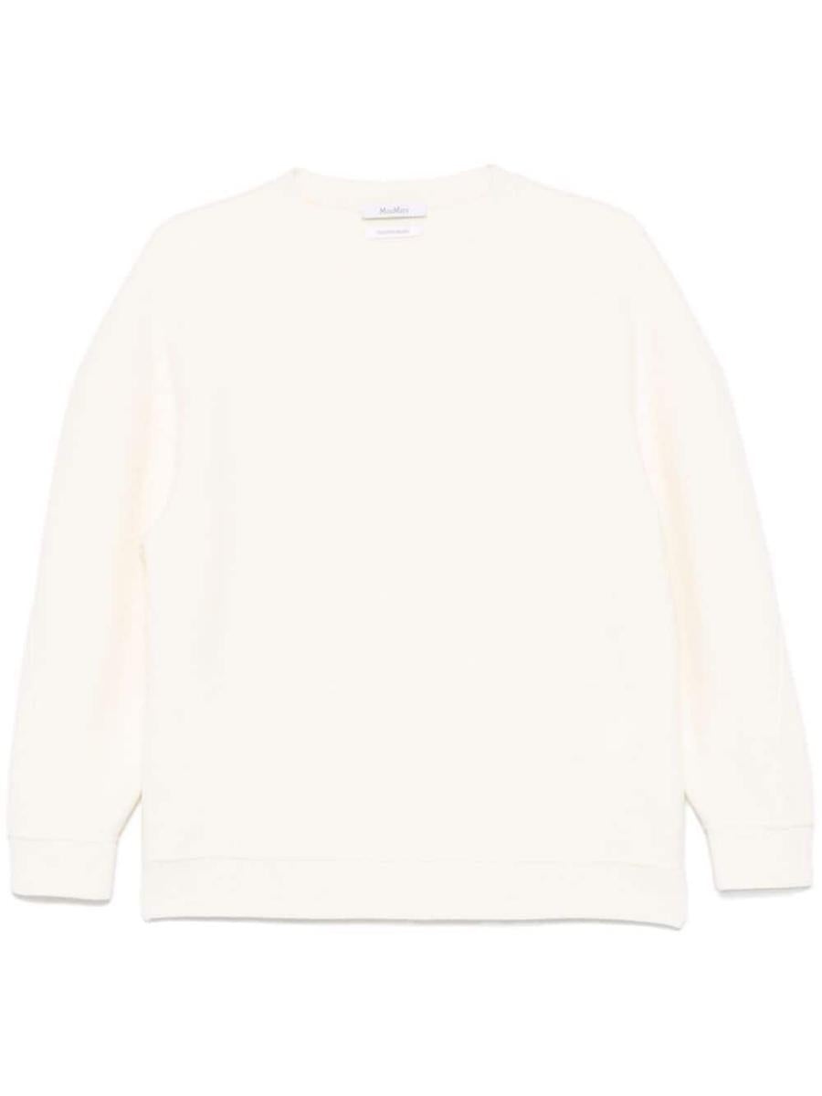 ivory white virgin wool-cashmere blend knitted construction crew neck drop shoulder long sleeves ribbed cuffs and hem straight hem This piece fits true to size. We recommend you get your regular size Model is 1,75m / 5ft 8in wearing size S Gender: Women Material: VIRGIN WOOL 85%, CASHMERE 10%, POLYAMIDE 5% Color: WHITE Made in: IT Product ID: 21926022600001 *Import tax/duty will be calculated at checkout (If applicable)