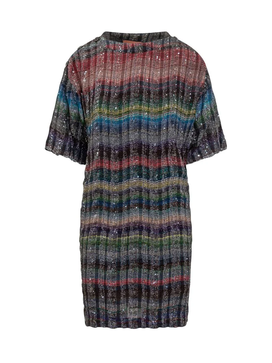 Missoni multicolor knit short dress with striped work and lurex details. Gender: Women Material: 52% VISCOSE, 24% COTTON, 14% POLYAMIDE, 7% METALLISED, 3% POLYESTER Color: MULTICOLOR Made in: Italy Product ID: DS25WG33BC005U SM9U7 *Import tax/duty will be calculated at checkout (If applicable)