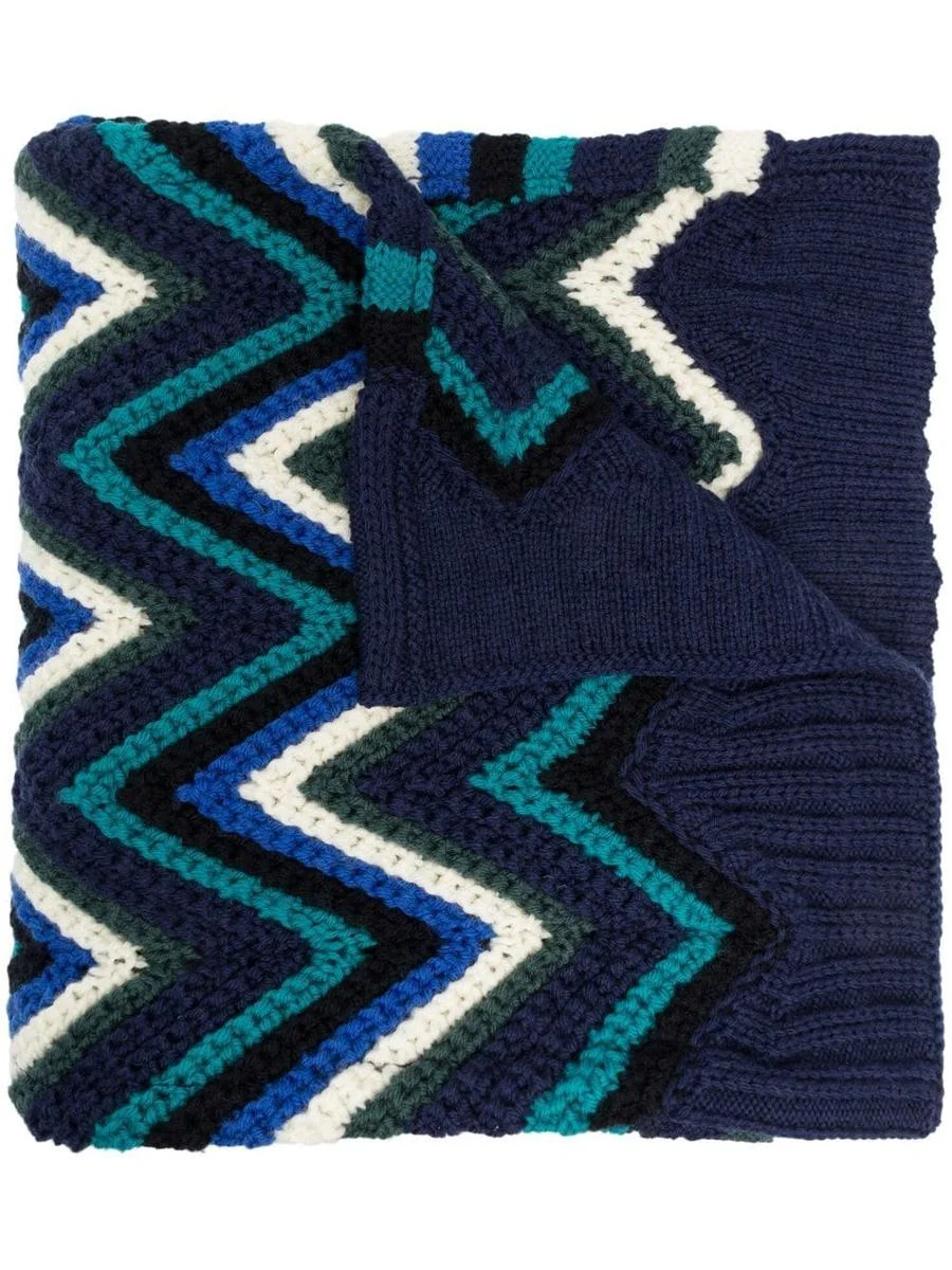 zig-zag embroidered scarf from MISSONI featuring navy blue, white, bright green, wool, zigzag embroidery and straight hem. Gender: Men Material: WOOL 100% Color: MULTICOLOUR Made in: Italy Product ID: SCR3WOU85880001 *Import tax/duty will be calculated at checkout (If applicable)