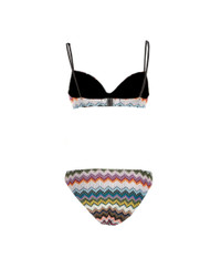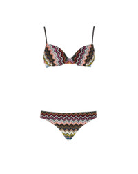 Balcony bikini in lamé viscose with zigzag pixel-effect pattern