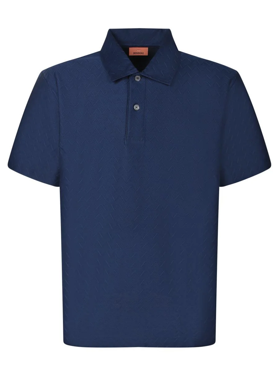 Short sleeve polo. Tonal zigzag design. Classic collar with three buttons. This elegant Missoni polo reimagines a classic men's wardrobe piece with an exclusive tonal zigzag pattern on blue fabric. Perfect for a casual yet sophisticated look, it pairs beautifully with jeans or chino pants. Gender: Men Material: 100%COTTON Color: BLUE Made in: Imported Product ID: US25S20A BJ00LJ S72J1 *Import tax/duty will be calculated at checkout (If applicable)